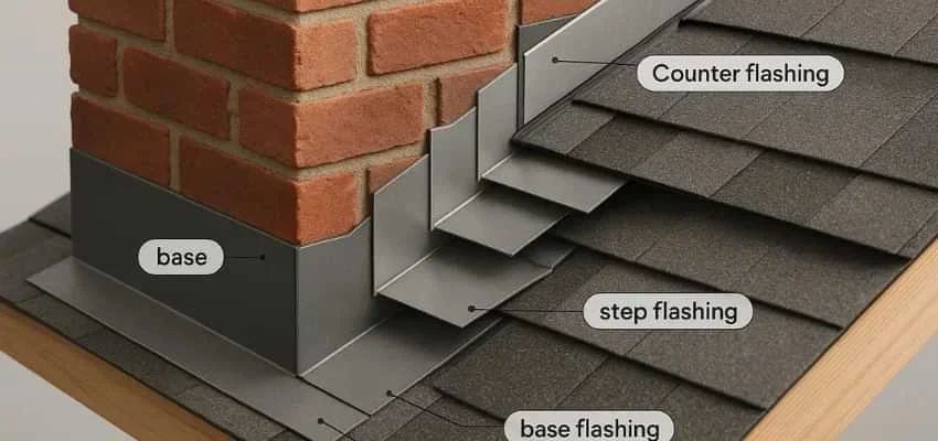 Step flashing tucks under each shingle course along the chimney sides. Counterflashing locks into mortar joints and overlaps those steps. In Dominion of Pleasant Valley, Wylie the overlap must be precise to block wind-driven rain. We avoid shortcuts like exposed face-nailing that can loosen and leak later.
