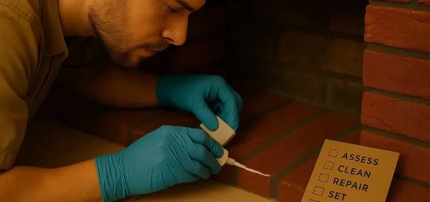 Tiny cracks often start at the firebox opening or along the hearth edge where temperature swings are strongest. In homes across Dominion of Pleasant Valley, Wylie, soot and heat slip through those hairlines, softening old adhesives and staining the substrate. What looks like a cosmetic issue can turn into loose corners and chipped edges if it is not addressed.